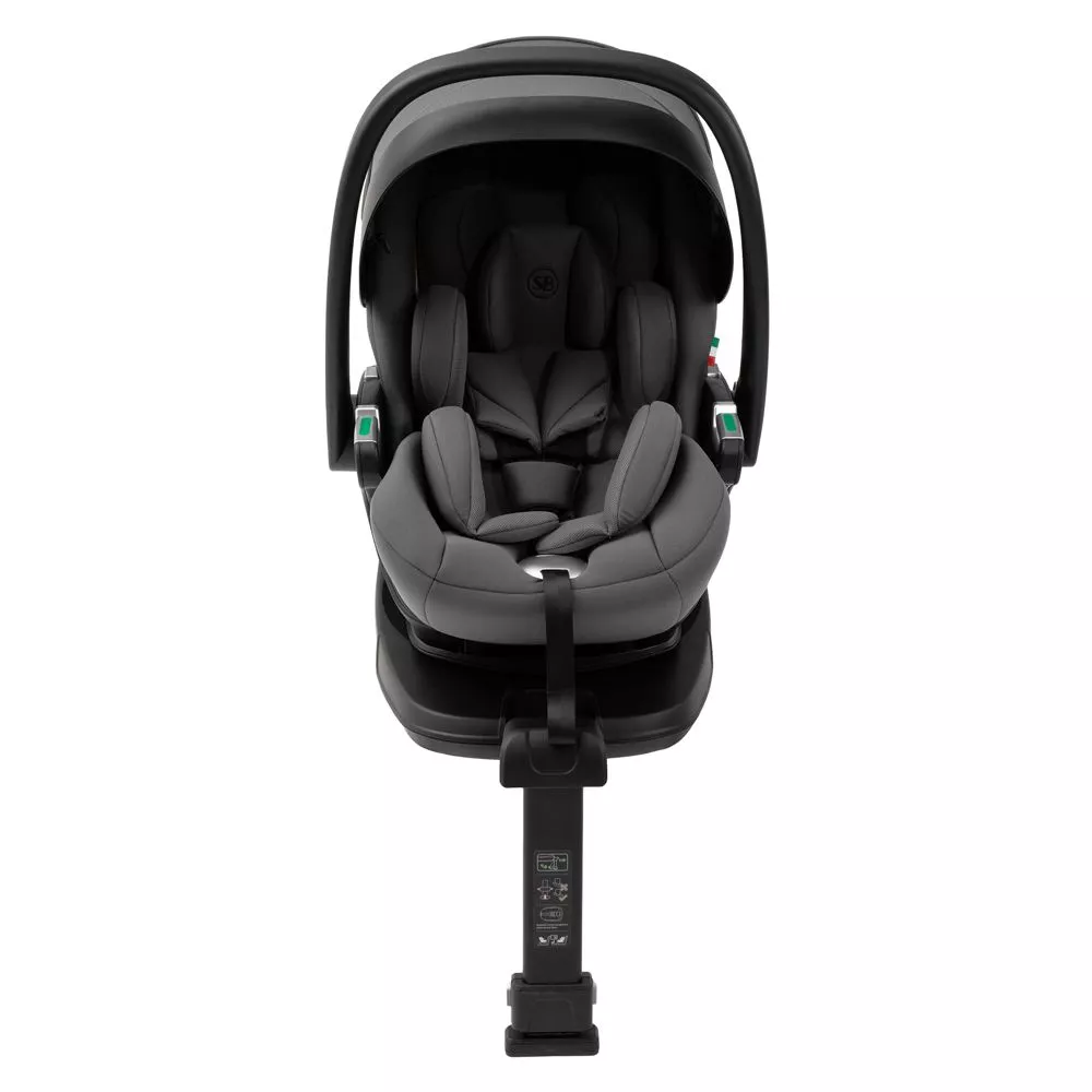 Автокресло устанавливается только против хода движения и фиксируется в автомобиле на идущую в комплекте базу изофикс, оснащенную механизмом вращения на 360 градусов, что облегчает и упрощает использование (при необходимости возможна установка в автомобиле без платформы изофикс с помощью штатного ремня безопасности). Маленький пассажир фиксируется 3-точечными ремнями безопасности с мягкими накладками, не сковывающими движения ребенка.