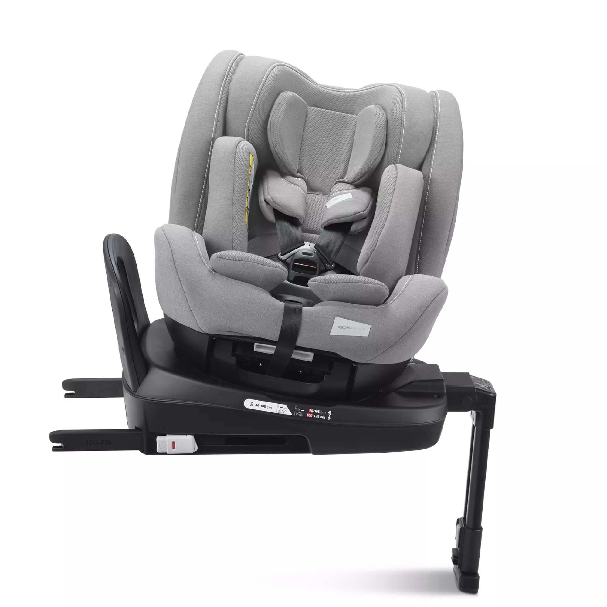 Автокресло можно установить по ходу движения, когда пассажир немного подрастет, примерно с 15 месяцев или против хода, пока малыш не вырастет до 105 см. База ISOFIX обеспечивает надежную фиксацию кресла, есть дополнительная опорная нога, когда Рекаро Салия 125 используется как автолюлька.