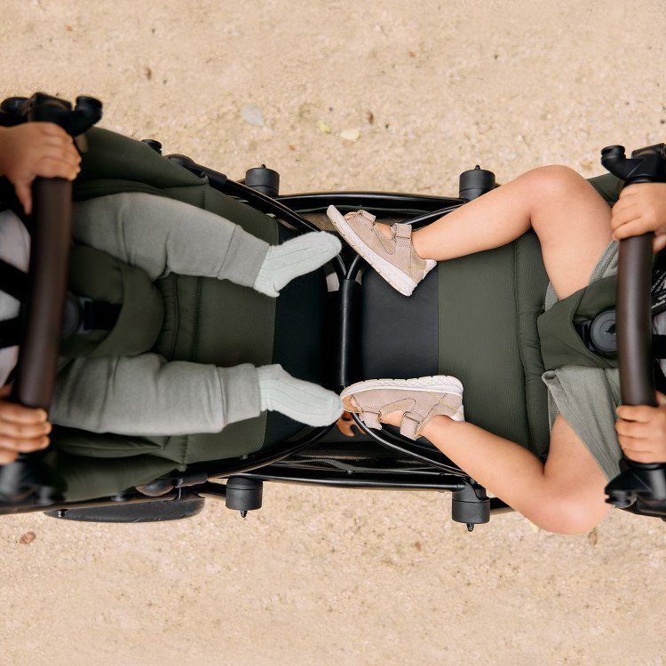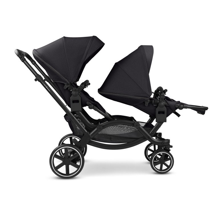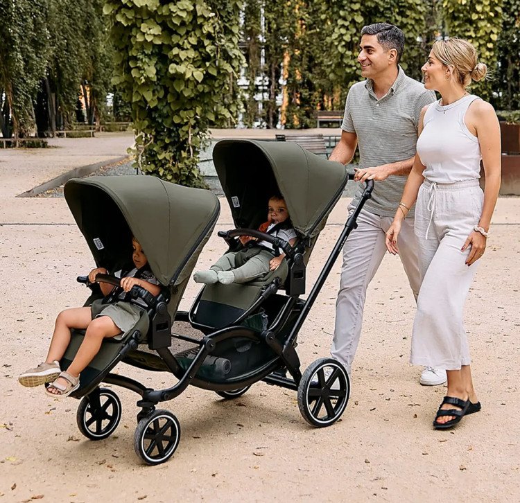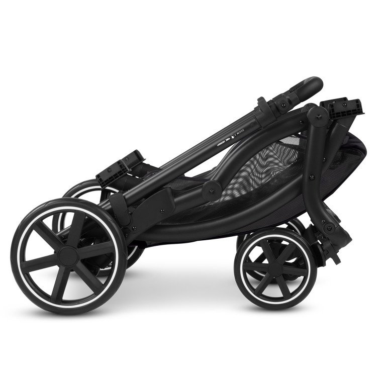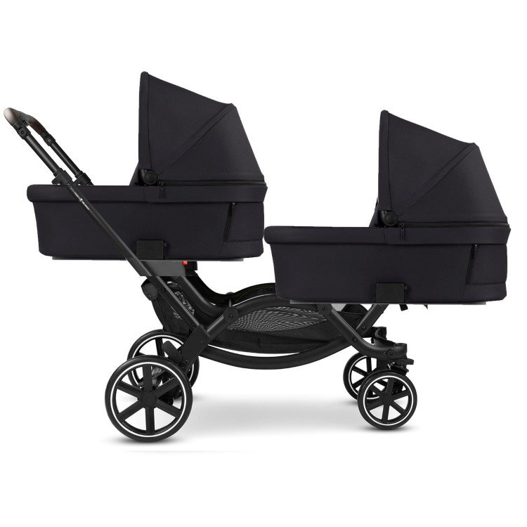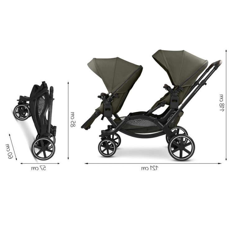 Несмотря на то, что коляска "двойная" она очень компактная, с шириной шасси всего 60см. Компактный дизайн делает коляску идеальной даже для самых тесных пространств, включая лифты. А с помощью установленных на раму автокресел (покупаются отдельно) коляску можно превратить в систему для путешествий. Рама коляски складывается очень компактно и не занимает много места. Сидения складываются отдельно.