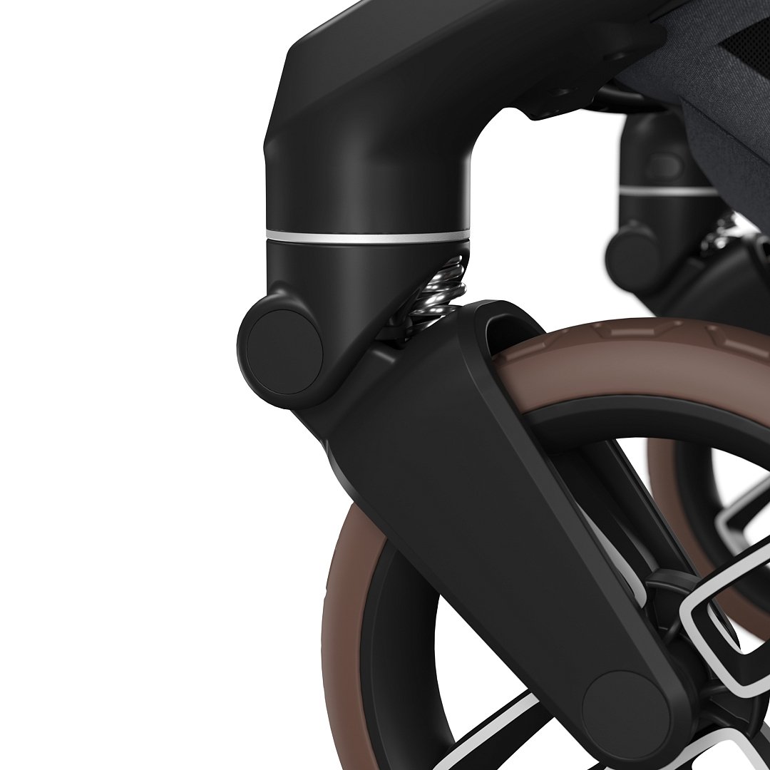 Инновационная рама Fame отличается эксклюзивными деталями дизайна и премиальной отделкой. Встроенная система LumiRide со светодиодным фонариком освещает тёмные улицы и слабо освещённые дорожки, обеспечивая безопасность и видимость для вас и ребёнка в любое время. Если ваш телефон нужно зарядить во время прогулки, просто подключите его к внешнему аккумулятору, и вы сможете зарядить его на ходу! Подвеска CosiCruise обеспечивает сверх плавный ход во время прогулки по любой местности. И безусловно родители оценят удобство складывания коляски в любом положении.