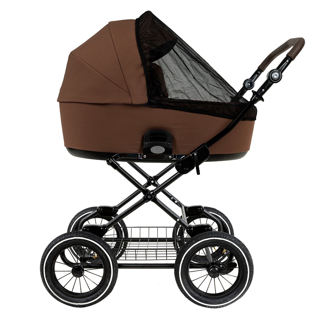 Главное достоинство такой рамы, что при движении по труднопроходимой местности колеса не вибрируют, коляска движется очень легко, а идеальная амортизация, основанная на кулисах, закрепленных в четырех точках, обеспечивает хороший сон для ребенка.