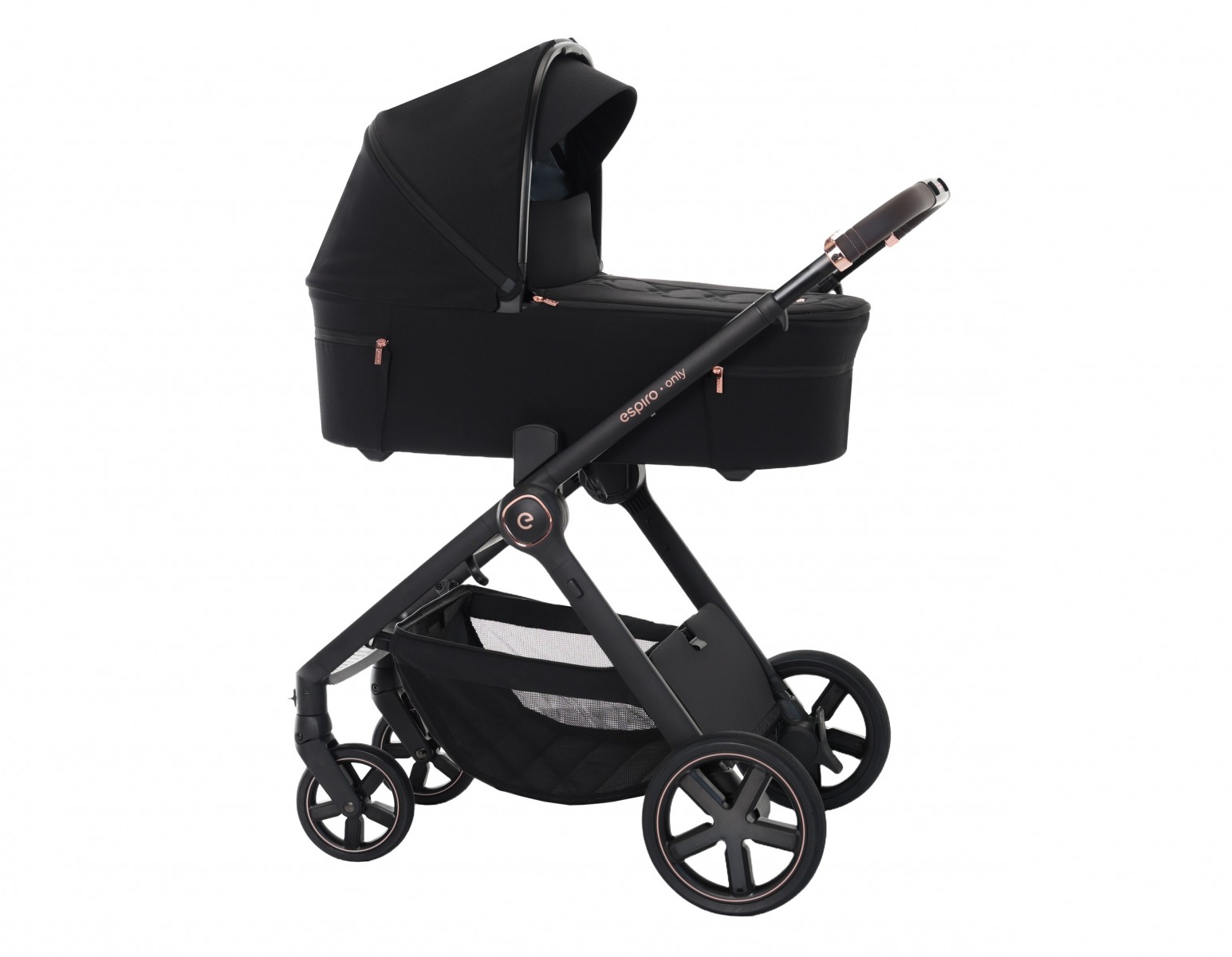 Люлька Espiro Only весит всего 5 кг. При ее легком весе сама люлька полноразмерная и просторная, ширина 34 см, длина 75 см по матрасику. Ее очень легко установить прямо на раму, а при использовании дополнительных адаптеров вы сможете расположить ее на 8 см выше - выбирайте сами комфортное для вас расположение люльки. Для прогулок в жаркие дни на задней части капюшона предусмотрено вентиляционное окно с сеткой. В более прохладные дни люлька может использоваться с чехлом с высоким бортиком на магнитах. При непогоде или ярком солнце вы сможете укрыть малыша удлинив капюшон.