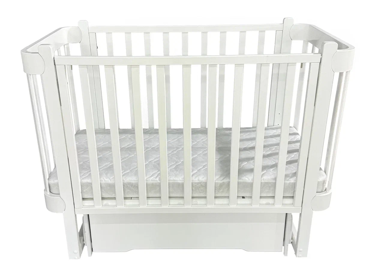 Новинка в таких кроватках - ящик. Практичное место для хранения детских объемных вещей, спальных принадлежностей. Ящик не занимает дополнительное место, прост в использовании и обязательно пригодится.