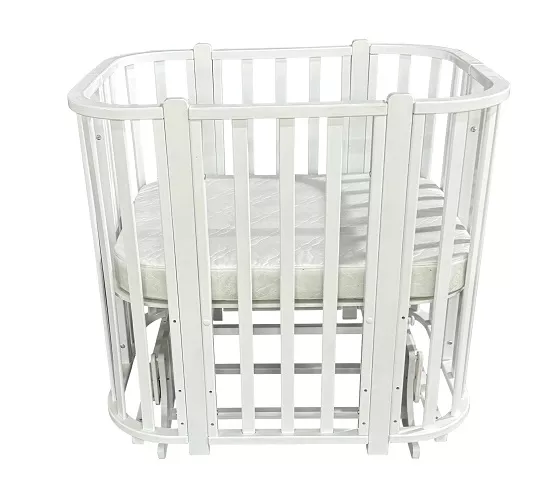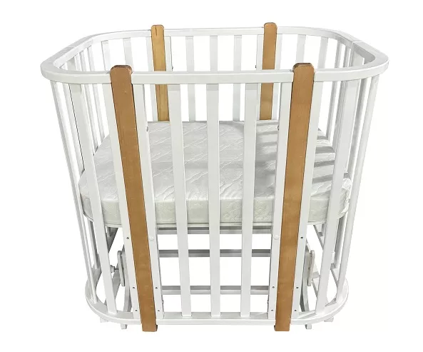 Кроватка Антел Элит оснащена колесами, для удобного перемещения по комнате, и поперечным маятником, который позволит укачать ребенка, без родительских рук.